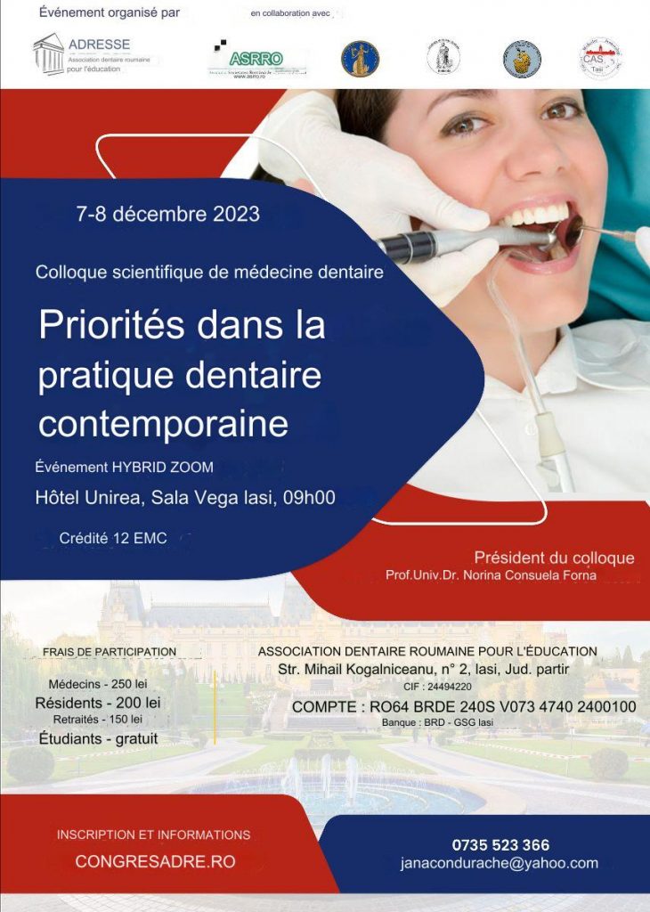 Symposium scientifique de medicine dentaire – “Priorites dans la practique dentaire contemporaine” – 7-8 Decembre 2023 – Iasi, Roumanieby adminin Uncategorizedon Posted on November 28, 2023